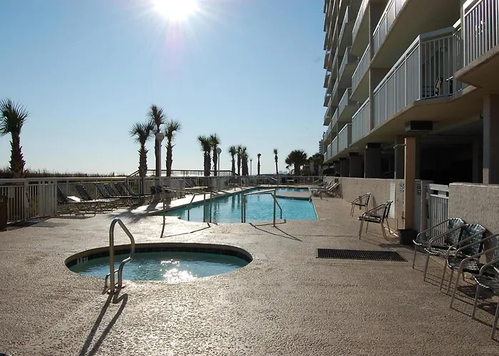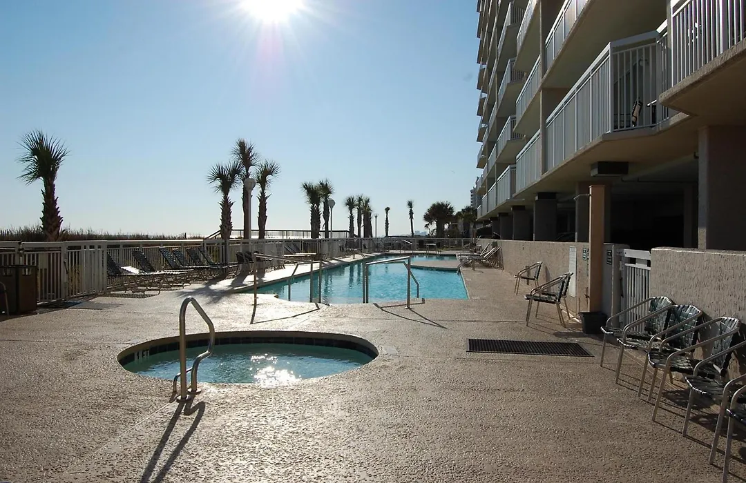The 2-bedroom Crescent Shores N - 304 - Ocean Front-Crescent Beach Section Myrtle Beach villa is located within easy reach of the Crescent Beach and offers a Jacuzzi, ensuring guests a relaxing stay.